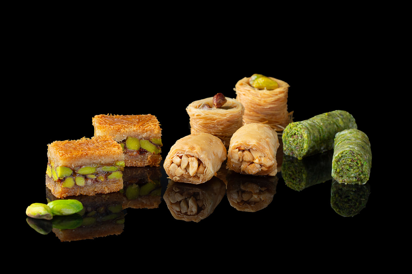 - Varietà di gusti: Scegli tra baklava al pistacchio, alle noci, agli anacardi e alle nocciole.